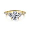 14K Yellow Gold Round Three Stone Lotus Diamond Engagement Ring