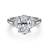 14K White Gold Oval Three Stone Lotus Diamond Engagement Ring