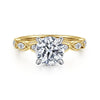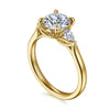 14K Yellow Gold Round Three Stone Lotus Diamond Engagement Ring