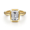 14K Yellow Gold Emerald Cut Bezel Set Diamond Engagement Ring