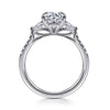 14K White Gold Round Three Stone Lotus Diamond Engagement Ring