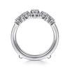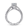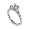 14K White Gold Round Three Stone Lotus Diamond Engagement Ring