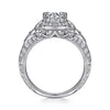 Vintage Inspired 14K White Gold Fancy Halo Round Diamond Engagement Ring