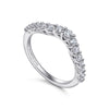 Curved 14K White Gold Shared Prong Diamond Wedding Band