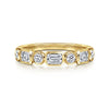 14K Yellow Gold Bezel Set Emerald Cut and Round Diamond Anniversary Band