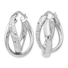 Sterling Silver RH-plated Polished / Textured Fancy Hoop Earrings