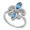 Diamond, Aquamarine Gemstone Fleur De Lis Ring